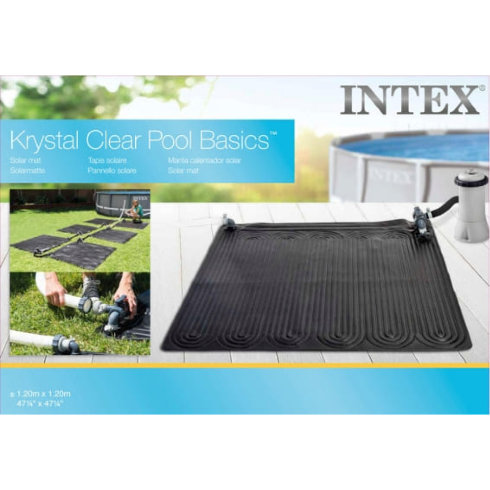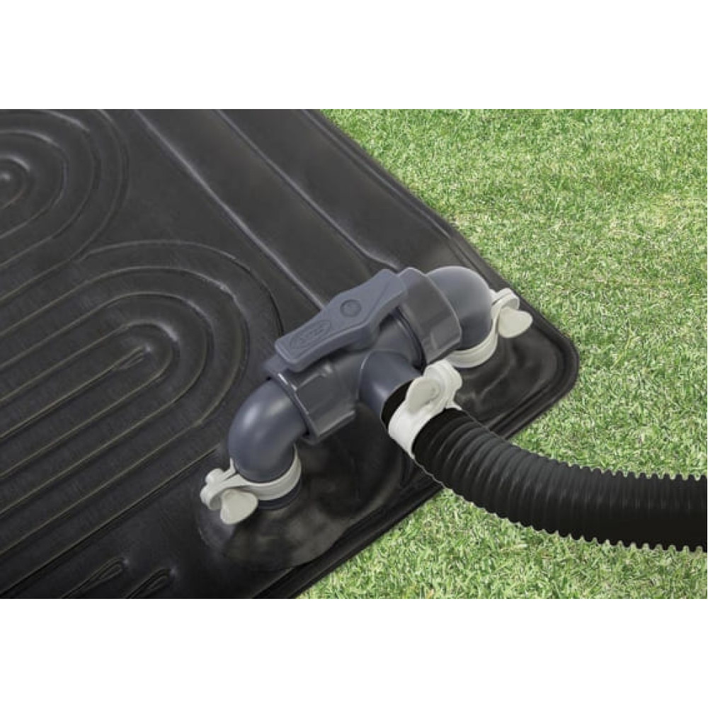 Вода из бассейна проходит через внутренние каналы черного мата, нагревается под воздействием солнца и возвращается обратно в бассейн. Система легко подключается к стандартному фильтр-насосу.