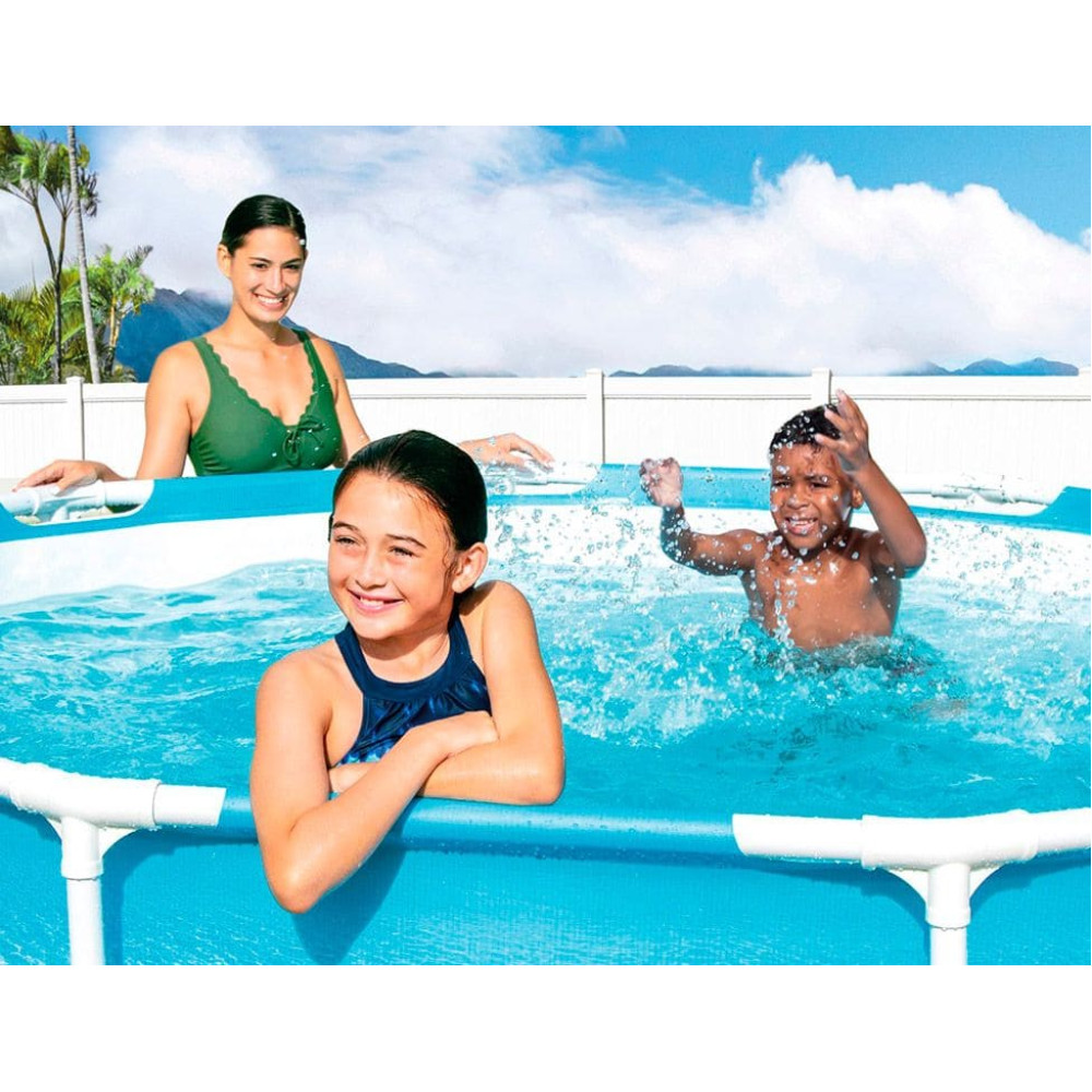 Каркасный бассейн Intex Metal Frame Ocean (305х76 см, арт. 28208) — это готовый комплект для летнего отдыха с уникальным визуальным эффектом. Модель выделяется захватывающим фотореалистичным принтом в стиле океана на боковых стенках и дне чаши. Бассейн поставляется вместе с системой фильтрации, что позволяет поддерживать чистоту воды с первого дня использования.