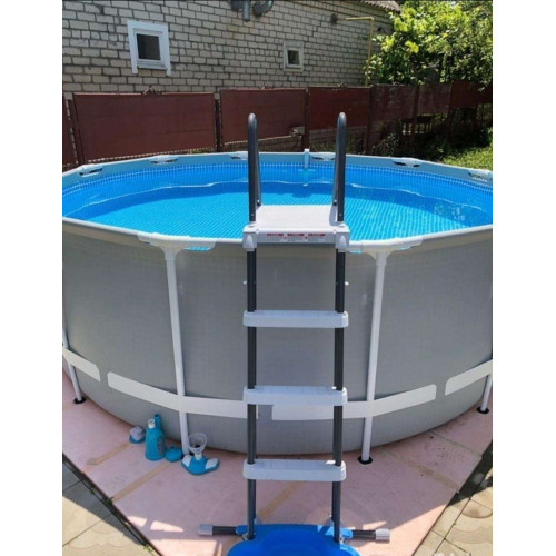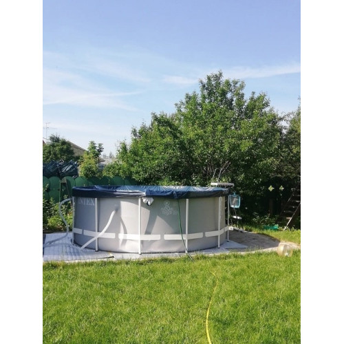 Купили Intex 26712 в начале сезона. Модель серии Prism Frame заметно крепче обычных синих бассейнов — каркас из оцинкованных труб внушает доверие. Сборка заняла около 40 минут, всё интуитивно понятно. Для семейного отдыха на участке — вариант идеальный, места хватает и взрослым, и детям